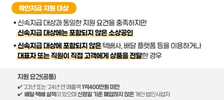(2) 다음으로, 신속지급 대상자는 별도 자료 제출이 필요 없습니다. 배달앱 실적만으로 바로 지급이 가능하며, 확인지급 대상자라면 실적 자료만 업로드하면 지원금이 확정됩니다. 복잡한 서류 준비 없이 빠르게 진행할 수 있다는 점이 가장 큰 장점입니다.
